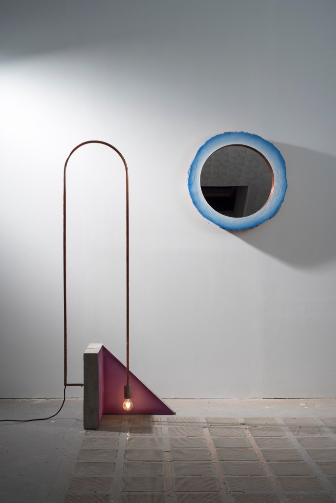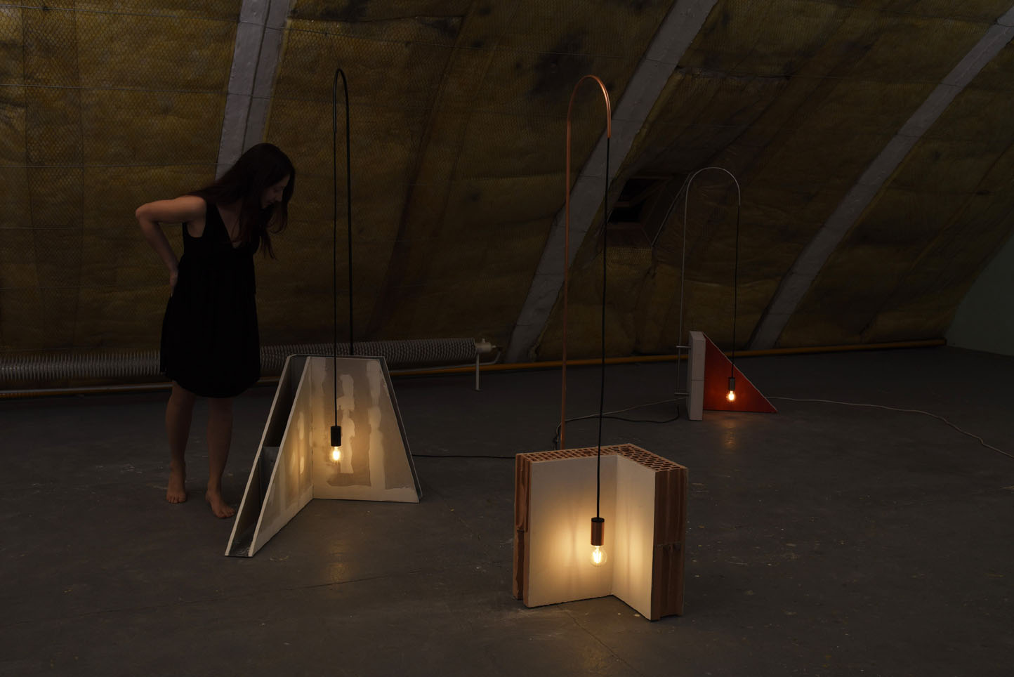 Kolekciu priestorových obrazov tvoria tri predmety, svetlá, zrkadlá a polica. Objekty sú štylizované časti stien umiestnené v priestore ako ďalšia vrstva. Vytvárajú umelecké diela, ktoré prechádzajú z priestoru do priestoru vo forme sôch. Kolekcia je vyrobená zo stavebných materiálov ako sú tehly a betón, povrchovo upravená omietkou a výraznými farbami. Kolekcia oslavuje poetiku každodenných vecí, ktoré nás obklopujú, ako sú prázdne rohy miestnosti, stojan na stene alebo zrkadlo. V prípade zrkadla jeho rám vytvára stenu priamo vyrezanú do požadovaného tvaru.Lighting objects